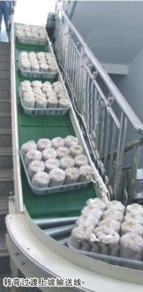 5.结构形式多样,有槽形胶带输送机、平型带式输送机、爬坡皮带式输送机、侧倾皮带输送机、转弯皮带输输机等多种形式,输送带上还可增设推板、侧挡板、裙边等附件,能满足各种工艺要求。