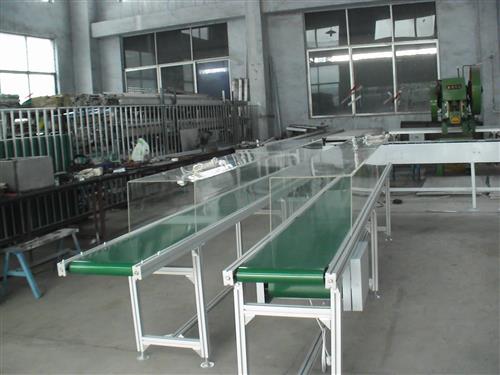 结构形式:槽型皮带机、平型皮带机、爬坡皮带机、转弯皮带机等多种形式,输送带上还可增设提升挡板、裙边等附件,能满足各种工艺要求。输送机两侧配以工作台、加装灯架,可作为电子仪表装配,食品包装等装配线。