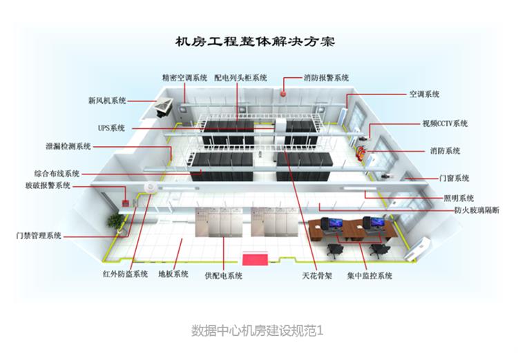 数据中心机房建设规范标准给出了数据中心机房的建设要求,包括数据中心机房分级与性能要求,机房位置选择及设备布置,环境要求,建筑与结构、空气调节、电气技术,电磁屏蔽、机房布线、机房监控与安全防范,给水排水、消防的技术要求。